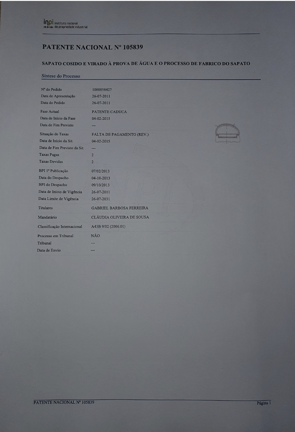 A 26-07-2011 apresentamos ao instituto de propriedade industrial o pedido de patente com o processo nº 105839- Sendo aprovado e publicado em despacho no boletim a 09/10/2013.